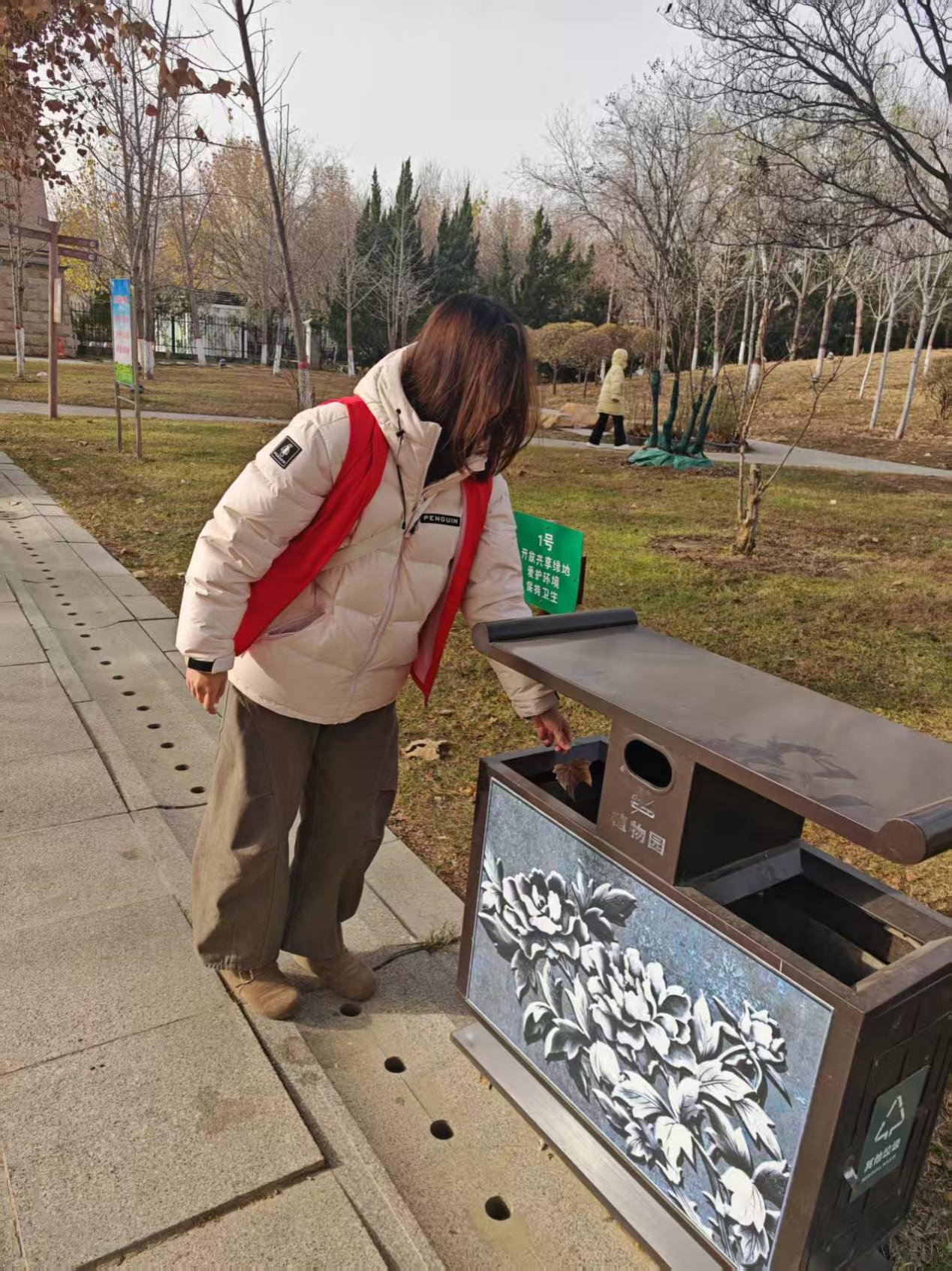 清扫过程中,志愿者们分工明确,默契配合:有的弯腰捡拾草丛深处的杂物,有的细致清扫步道缝隙的垃圾,有的及时分拣打包各类废弃物,始终保持高涨的干劲,不放过任何一处卫生死角。忙碌的身影穿梭在园区各处,成为冬日里一道鲜活的文明风景线,也深深触动着过往的游客。