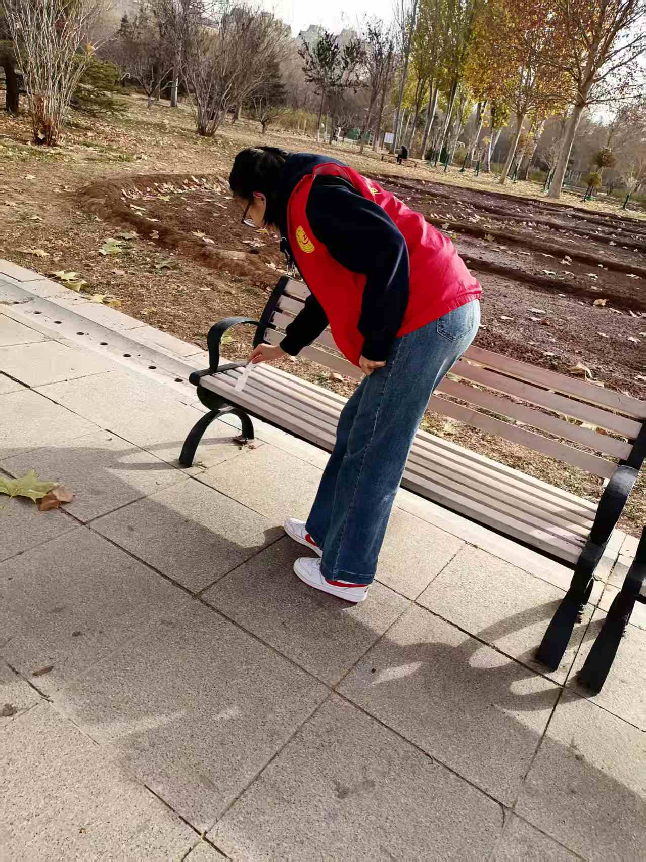 活动开始前,牟欣媛同学明确了各小组的清扫区域与具体分工,有序分发扫帚、垃圾袋、垃圾夹子等工具,并强调了活动注意事项与安全防护要点。抵达园区后,大家迅速投入清扫工作,重点对园区步道、草坪绿地、景观设施周边及休闲座椅旁的落叶、纸屑、塑料废弃物等进行清理。