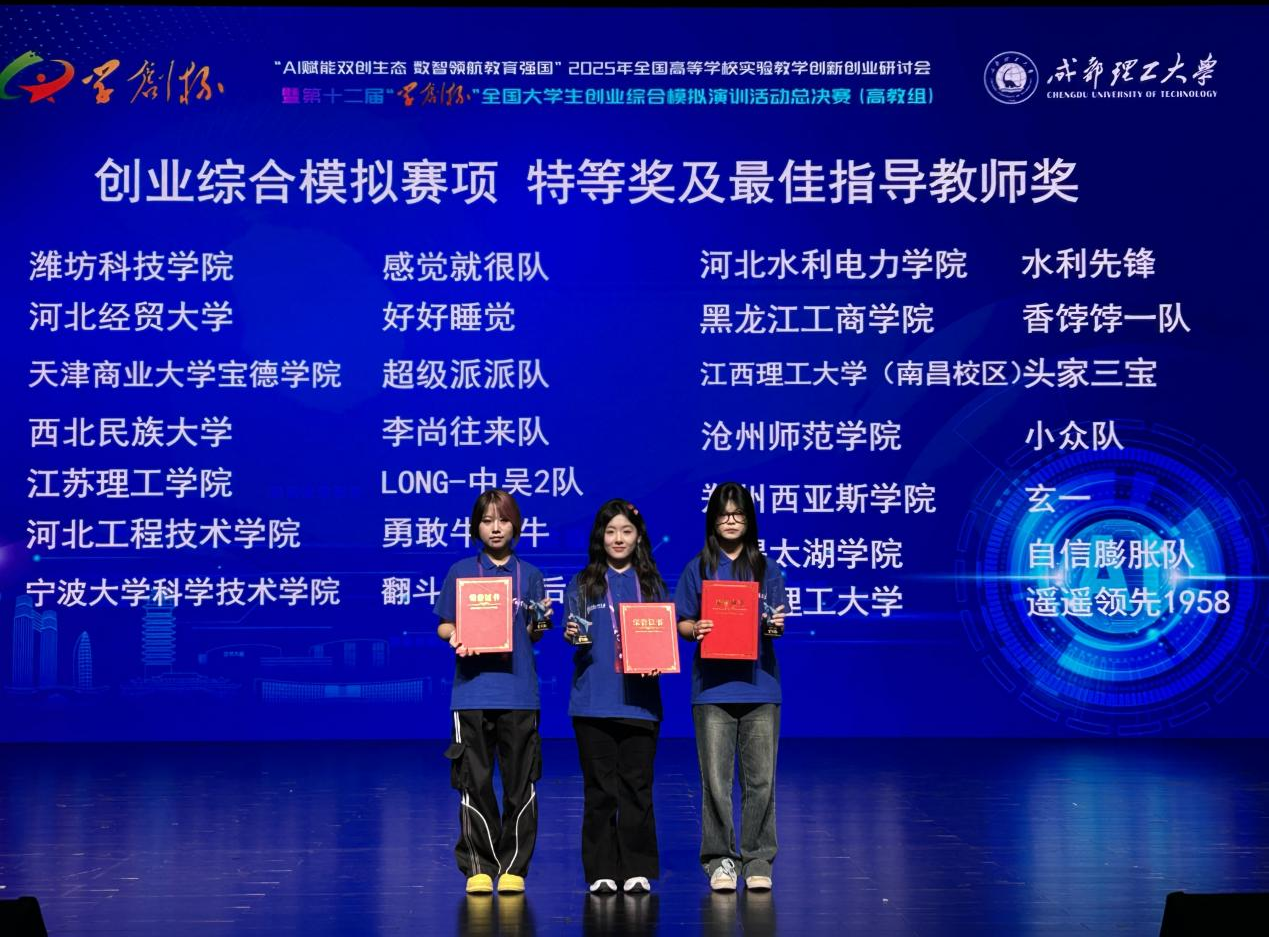 10月18日,由高等学校国家级实验教学示范中心联席会经济与管理学科组和中国陶行知研究会联合主办的第十二届“学创杯”全国大学生创业综合模拟演训活动总决赛在成都理工大学顺利落下帷幕。我校由经济管理学院侯晓芳、张淑慧、相铭阳、梁竞文、杨雨、曹仪冉六位同学组成的两支团队在吴莹莹和李宏宇两位老师的指导下,不负众望成功摘得创业赛道国家特等奖及理财赛道国家一等奖,这也是我院在该项赛事中的历史最好成绩,展现了经济管理学院在财务管理和创新创业人才培养方面的专业实力和丰硕成果。