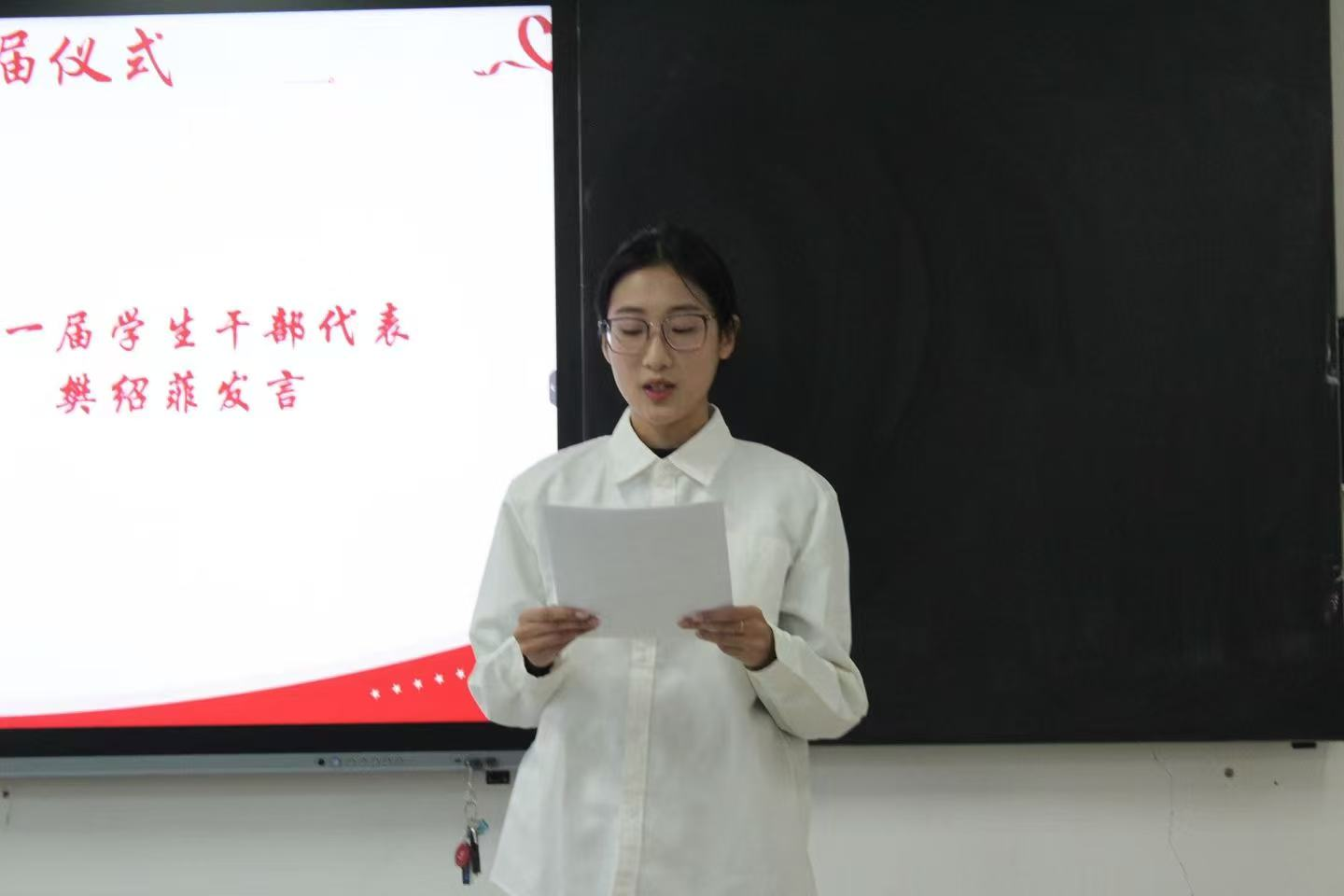 紧接着,往届学生会主席樊绍菲以“传承与期许”为主题分享感悟,她鼓励新一届干部要以身作则扛责任、互帮互学共成长,在务实工作中守初心、在创新探索中求突破,不断提升自身综合素养。而本届自律会主任李佳兆则立足职责作出承诺:将以“服务无小事”为准则,认真倾听同学诉求、高效落实工作任务;以“担当不缺位”为底线,严守组织纪律、杜绝推诿敷衍;以“共进不止步”为目标,带头勤学实干、凝聚团队力量,全力打造有温度、有实效的集体。