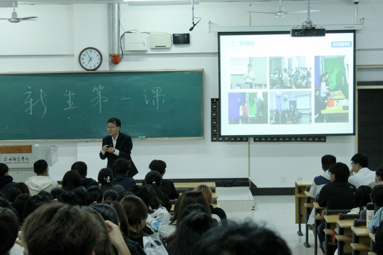 为帮助2025级新生适应大学生活节奏,明晰经济管理学科的学习方向与成长路径,引导新生明确自我定位、树立远大理想,经济管理学院于2025年10月13日晚在齐越楼四阶教室召开2025级新生第一课。本次大会由经济管理学院院长李建忠主持进行,经济管理学院2025级全体新生共同参加。