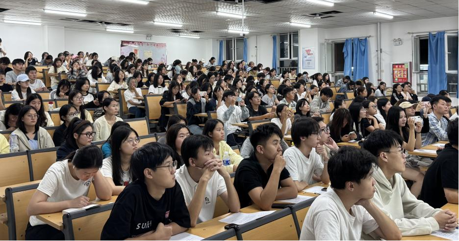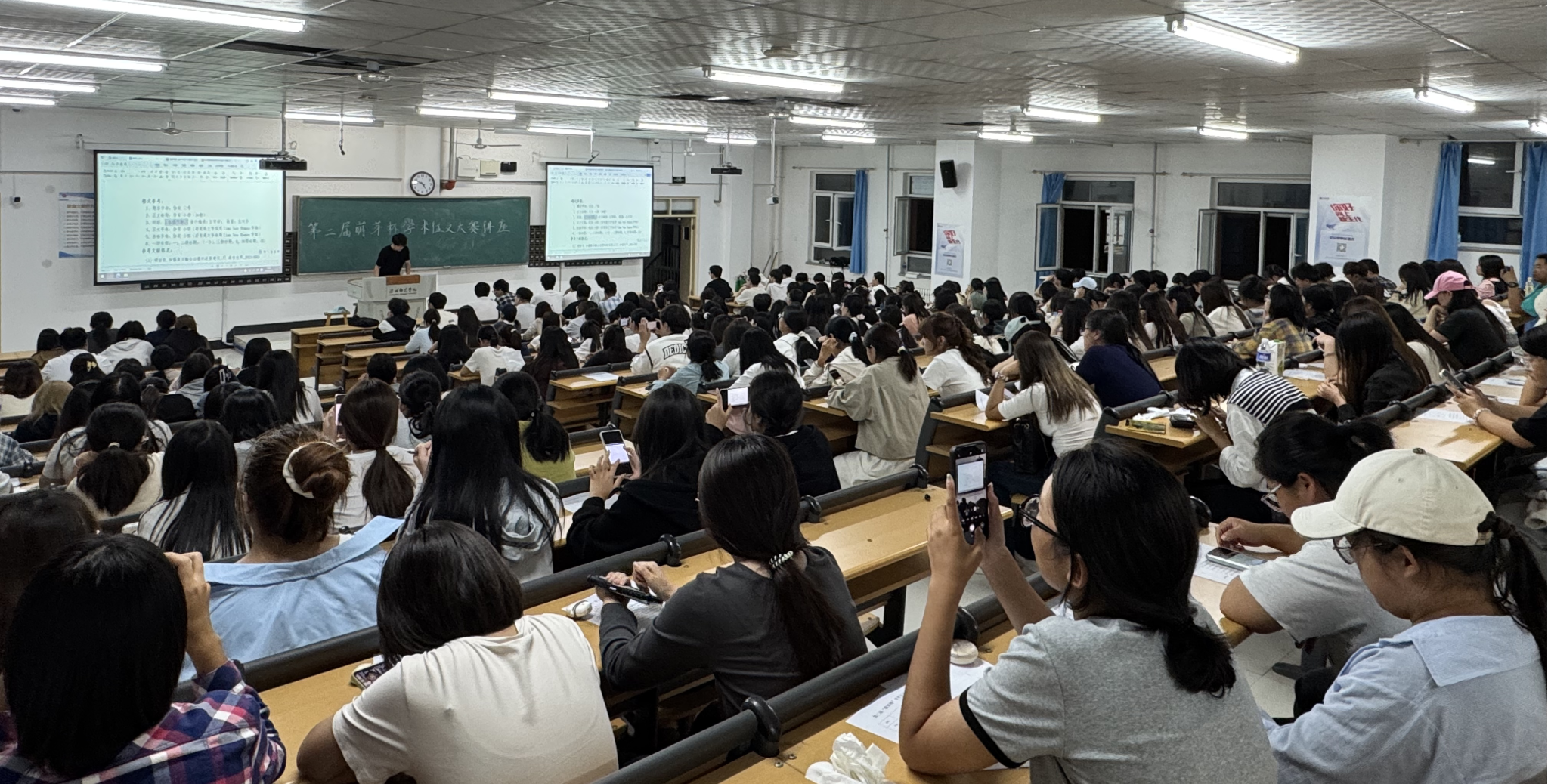 2025年9月28日,沧州师范学院经济管理学院第二届萌芽杯学术征文大赛指导讲座在齐越楼四阶梯教室顺利召开。经济管理学院近300名参赛选手齐聚一堂,现场座无虚席,会场气氛热烈。整场讲座学术氛围浓厚,掌声与笑声此起彼伏,展现了经管学子高涨的学术热情和积极的求知精神。